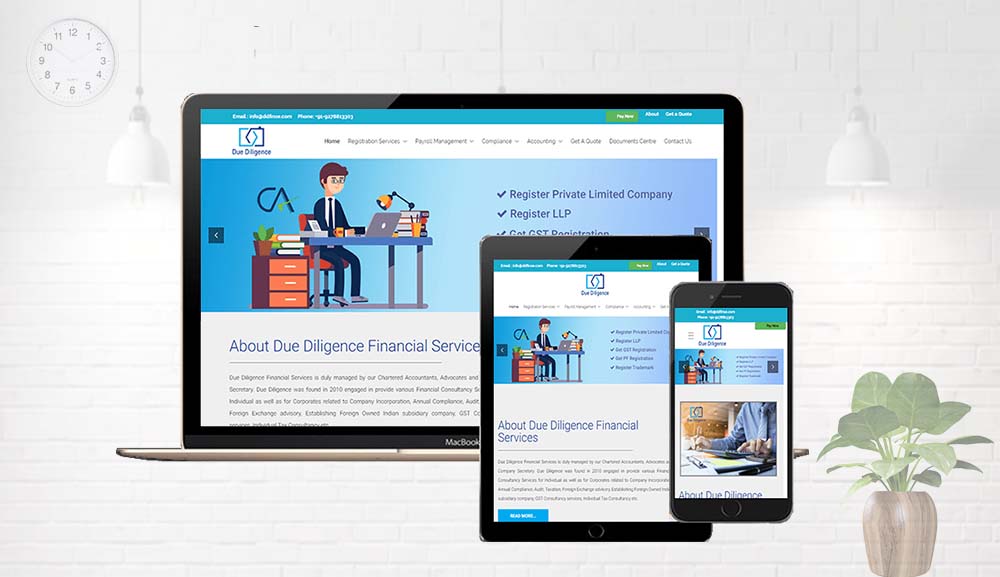 They offered financial services is duly managed by there Chartered Accountants, Advocates and Company Secretary. Due Diligence was found in 2010 engaged in provide various Financial Consultancy Services for Individual as well as for Corporates related to Company Incorporation.
